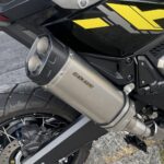 マフラーエンブレムはステッカーではなくゴールドを基調にした真鍮プレートを使用。スタイリッシュなデザインはマフラーを引き締めた印象に設定