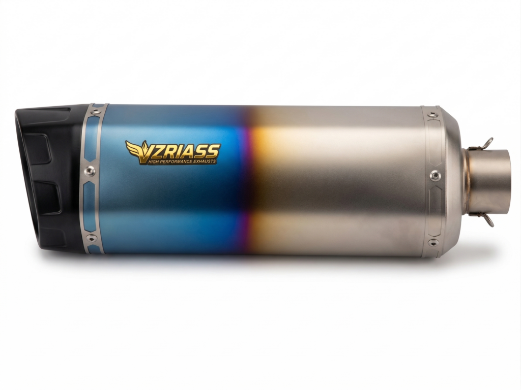 マットステンレス Type S サイレンサーをさらに電極メッキ(Electroplating)を行うことによりチタンマフラーのようなブルーを再現